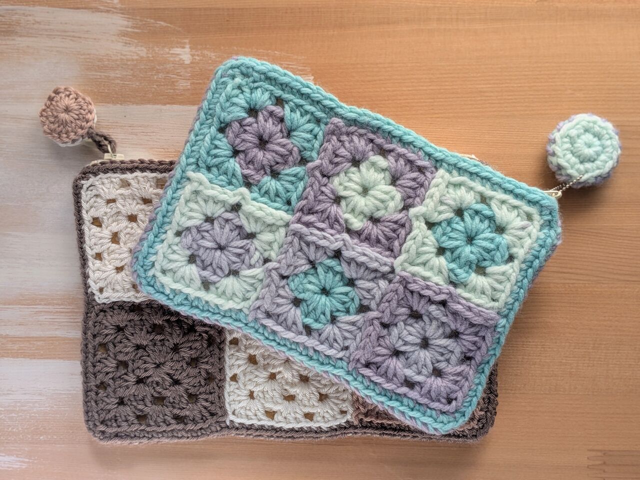 動画では3色6枚繋げて縁編みをするまでですが1色でも何色でも何枚でも繋いでいけるのでひざ掛けやポーチやバッグなども作れます。