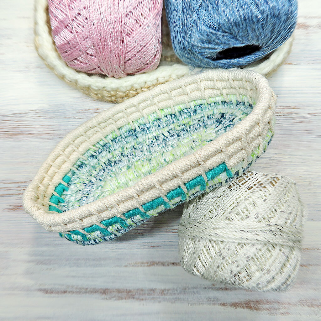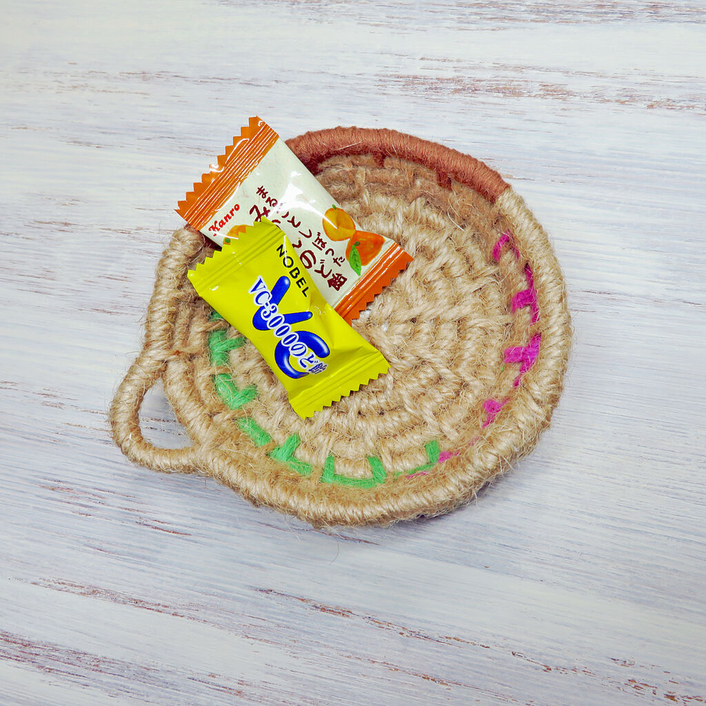 ただしこのコイルロープの作り方ができれば実用的でもっと大きなインテリア小物も作れます。