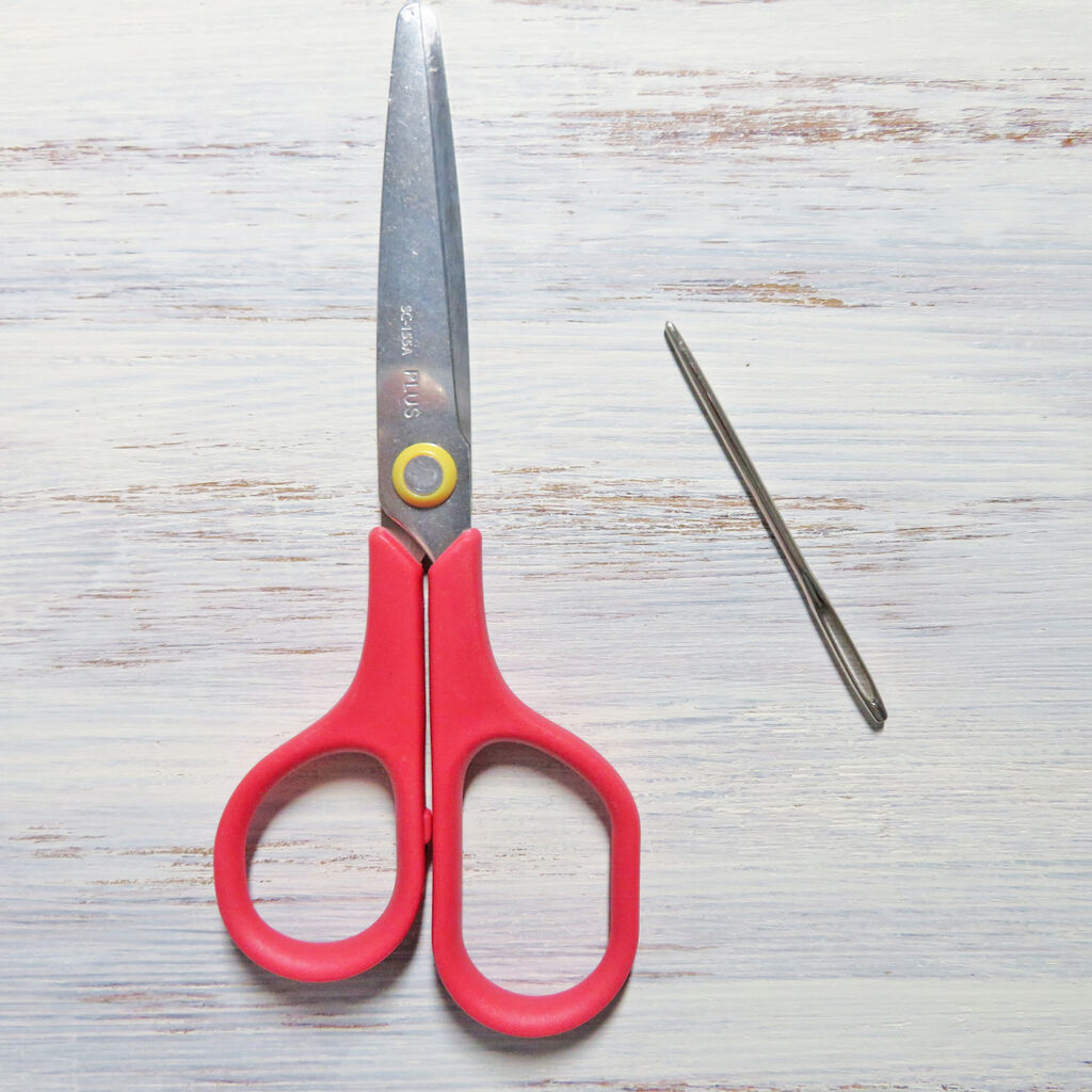 ・糸と芯を切るハサミと毛糸用とじ針用途によって変えてみてください。