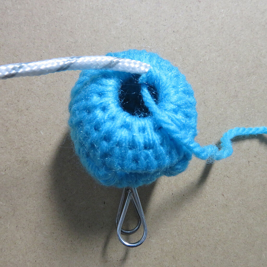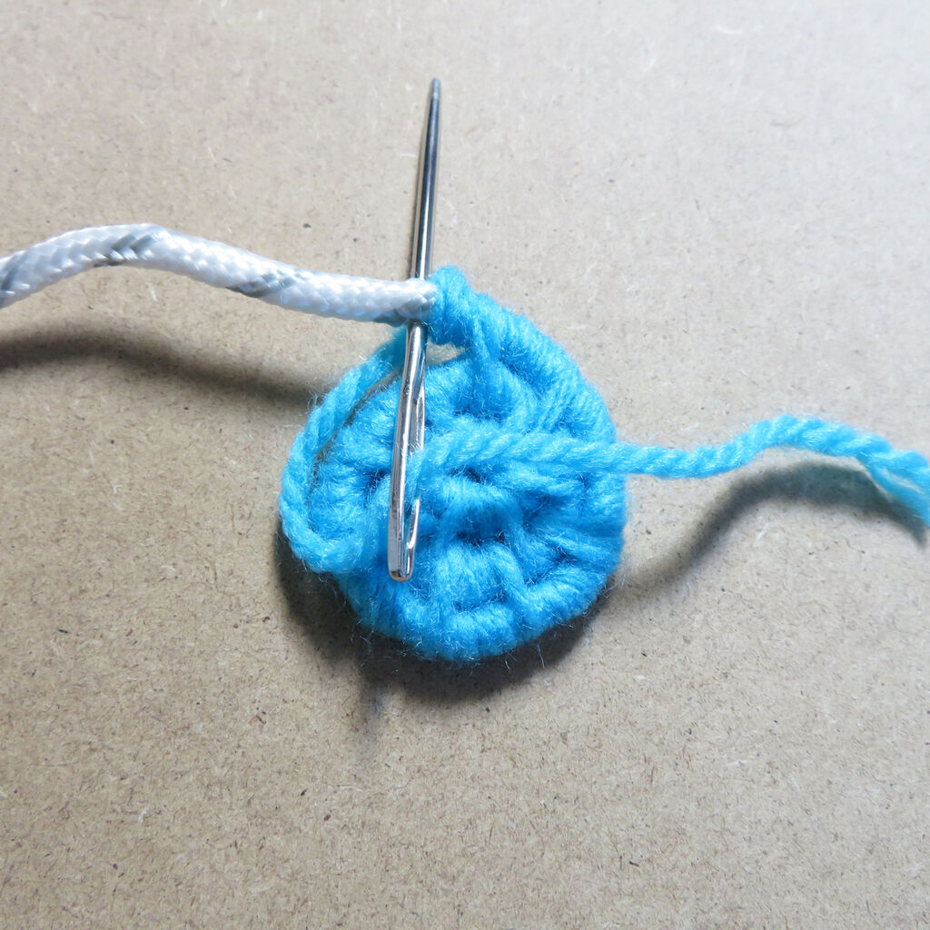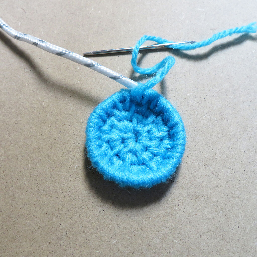 今回は芯に別の紐や糸を数回巻いては一段下に針を通して固定する方法にしました。