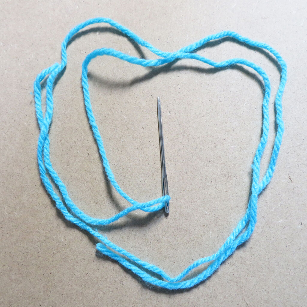 とじ針は巻き付ける糸や毛糸に合わせてください。針もハサミも100均のもの。