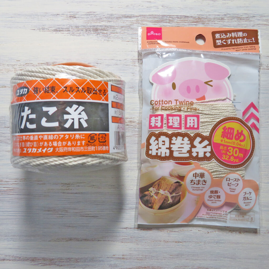 今回はタコ糸、アクリル毛糸3種類で作ってみました。