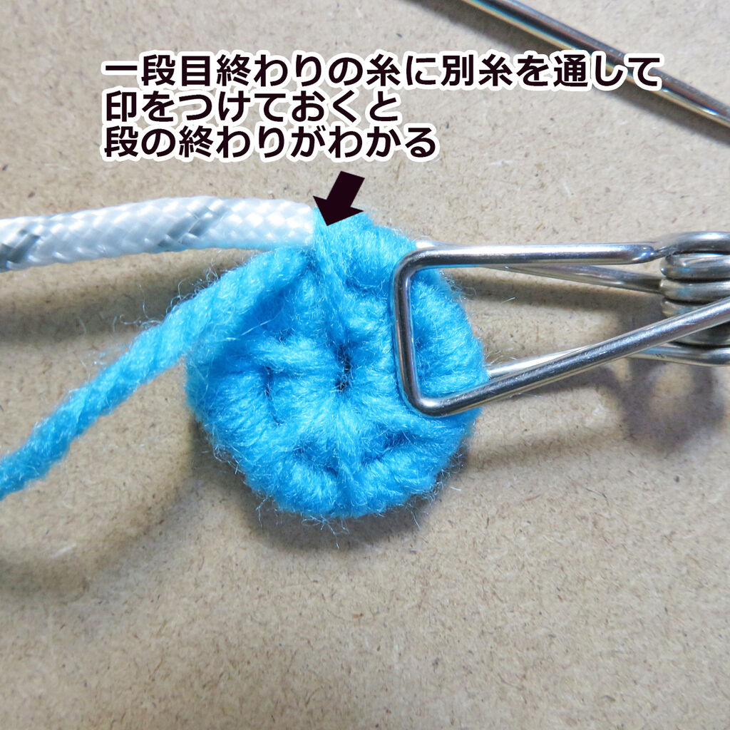 新しい毛糸で前の糸と今の新しい糸の端を巻き込んで作っていく