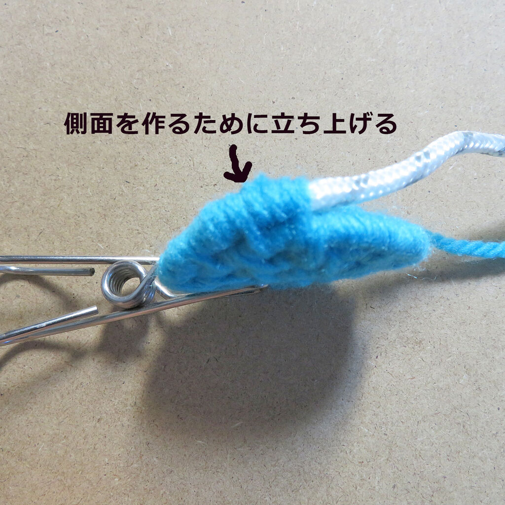 毛糸の端は巻きこんで隠すため巻き始めは画像のようにする。